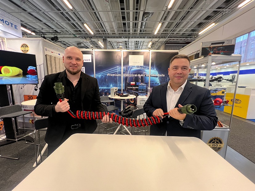 Företaget LEONIUM från Polen var på plats på Automässan, där de visade sitt gedigna sortiment riktat till fordonsindustrin. LEONIUM tillverkar, bland annat, högklassiga elektriska kablar samt pneumatiska kablar men också laddkablar till elbilar, pneumatiska kopplingar, uttag, adaptrar och batterifrånskiljare. På bilden syns Marcin och Wojciech från LEONIUM.