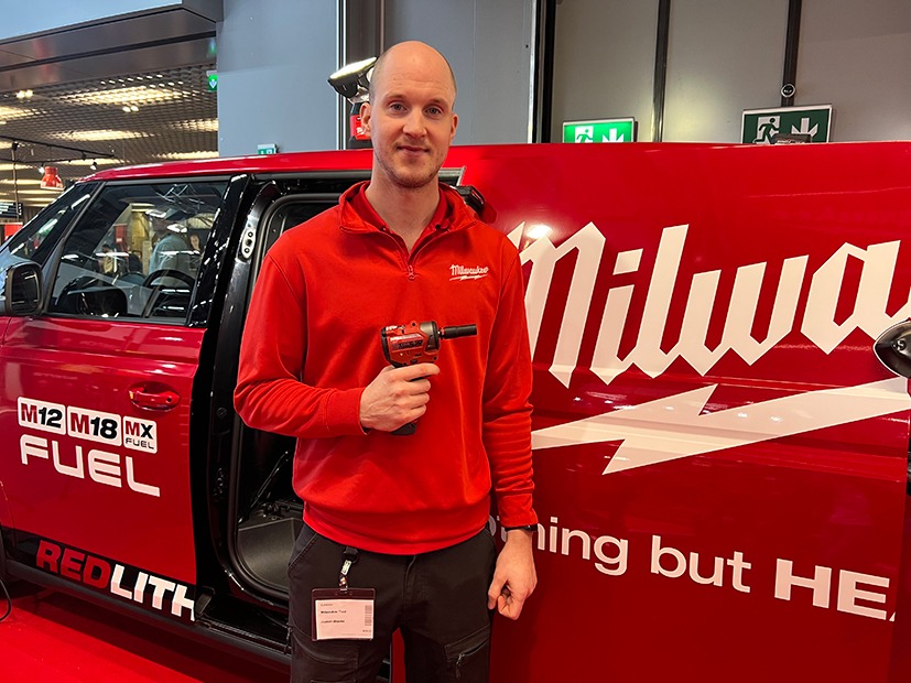 Joakim från Milwaukee visade upp nya M12-mutterdragaren FSCIWF38. Med en vikt på 0,91 kg (med M12HB 2,5 Ah-batteri), längd på 114 mm och en omkrets på 51 mm så förstår nog alla att den här mutterdragaren är grymt smidig i trånga utrymmen.