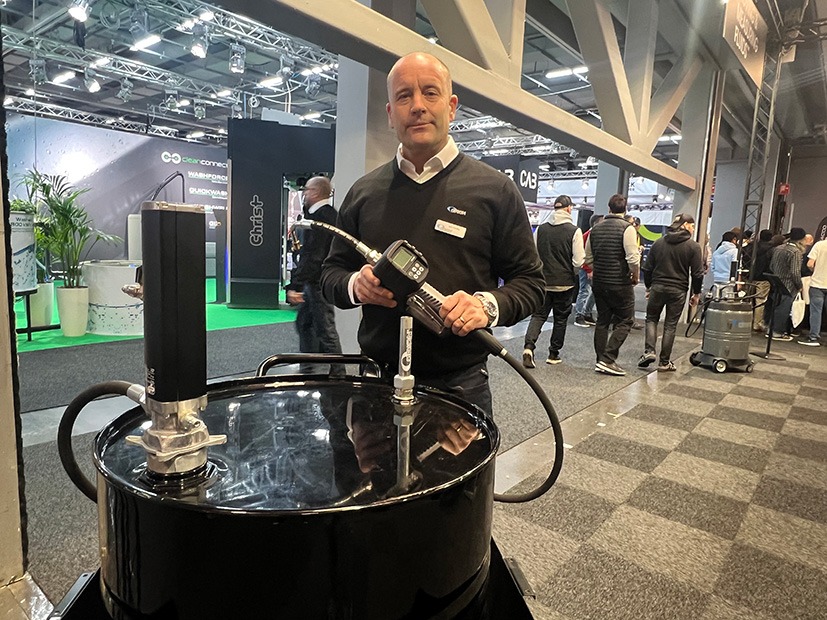 Med det nya NEX·U·-systemet från Alentec & Orion kan nu befintliga OriLink-installationer – vätskeövervakningssystemet som finns installerat på tusentals verkstäder i Sverige och i världen – byggas ut med mobila enheter för att enklare fylla på smörjmedel. När angiven volym är uppnådd så stänger U·link automatiskt av och den tappade volymen rapporteras tillbaka till OriLink och sedan vidare till verkstadens affärssystem och arbetsorder. Fordonets ägare blir då fakturerad exakt den volym som är fylld. Smidigt var ordet. Bilden: Johan från Alentec & Orion.