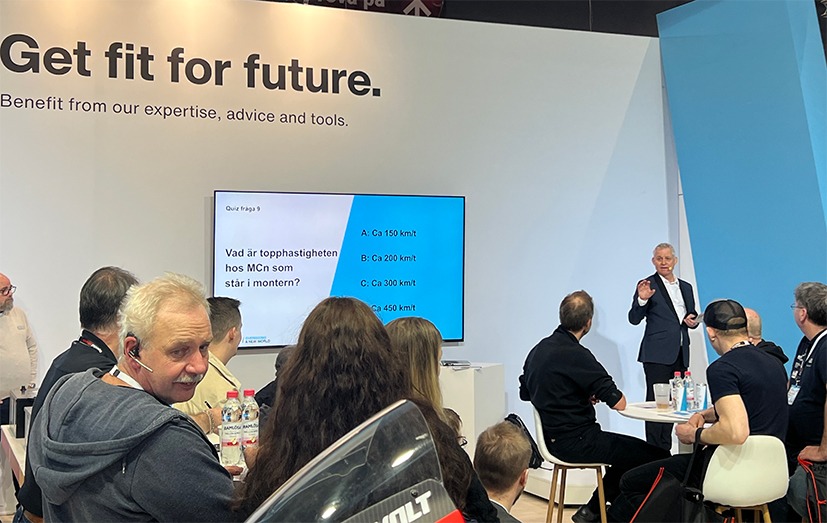 Exide, en ledande leverantör av innovativa och hållbara batterilösningar för fordonssektorn, lockade stora skaror besökare till sin monter på Automässan. Här kunde besökarna, bland mycket annat smått och gott, ta del av Exides AGM- och xEV-lösningar för framtidens mobilitet inom varumärkena Exide, Tudor och Sonnak. På bilden: Interaktivt quiz hos Exide på fredagen, som presenterades av Richard Olsson.